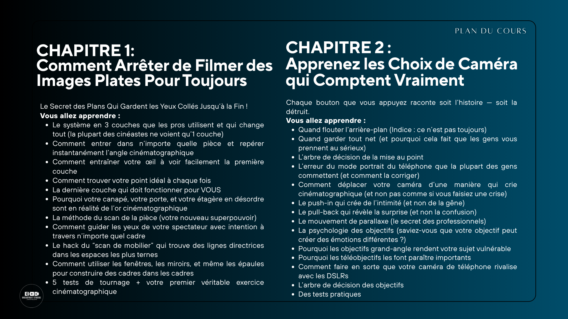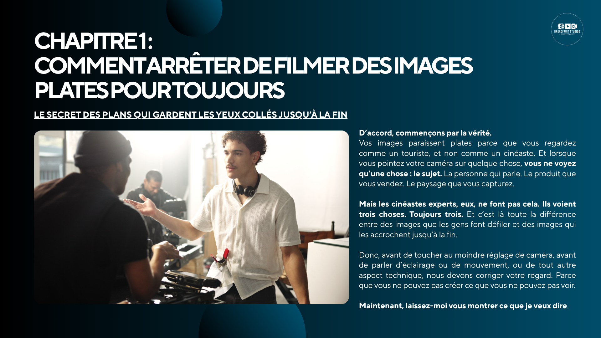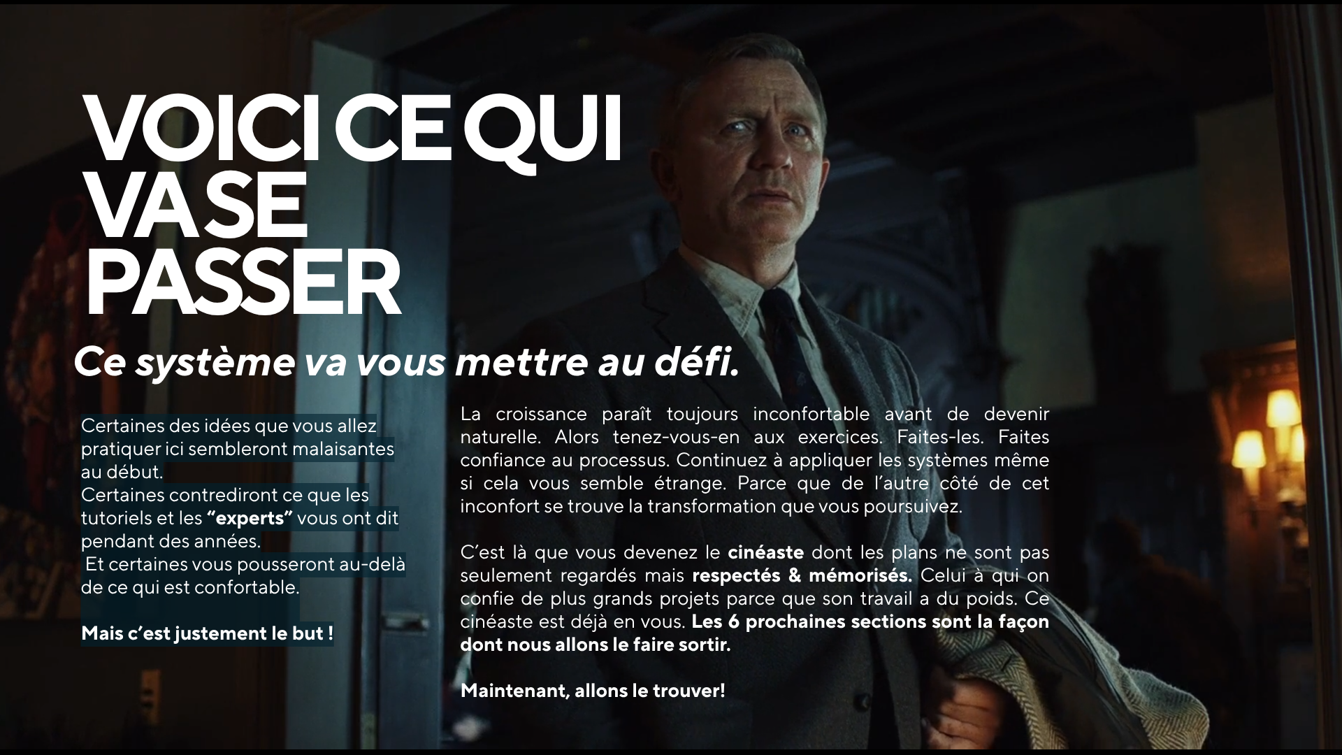 Jette un œil à l’intérieur du livre qui révèle le système que les meilleurs réalisateurs utilisent pour créer des plans, des films et des histoires cinématiques qui captivent le public et te rendent inoubliable.