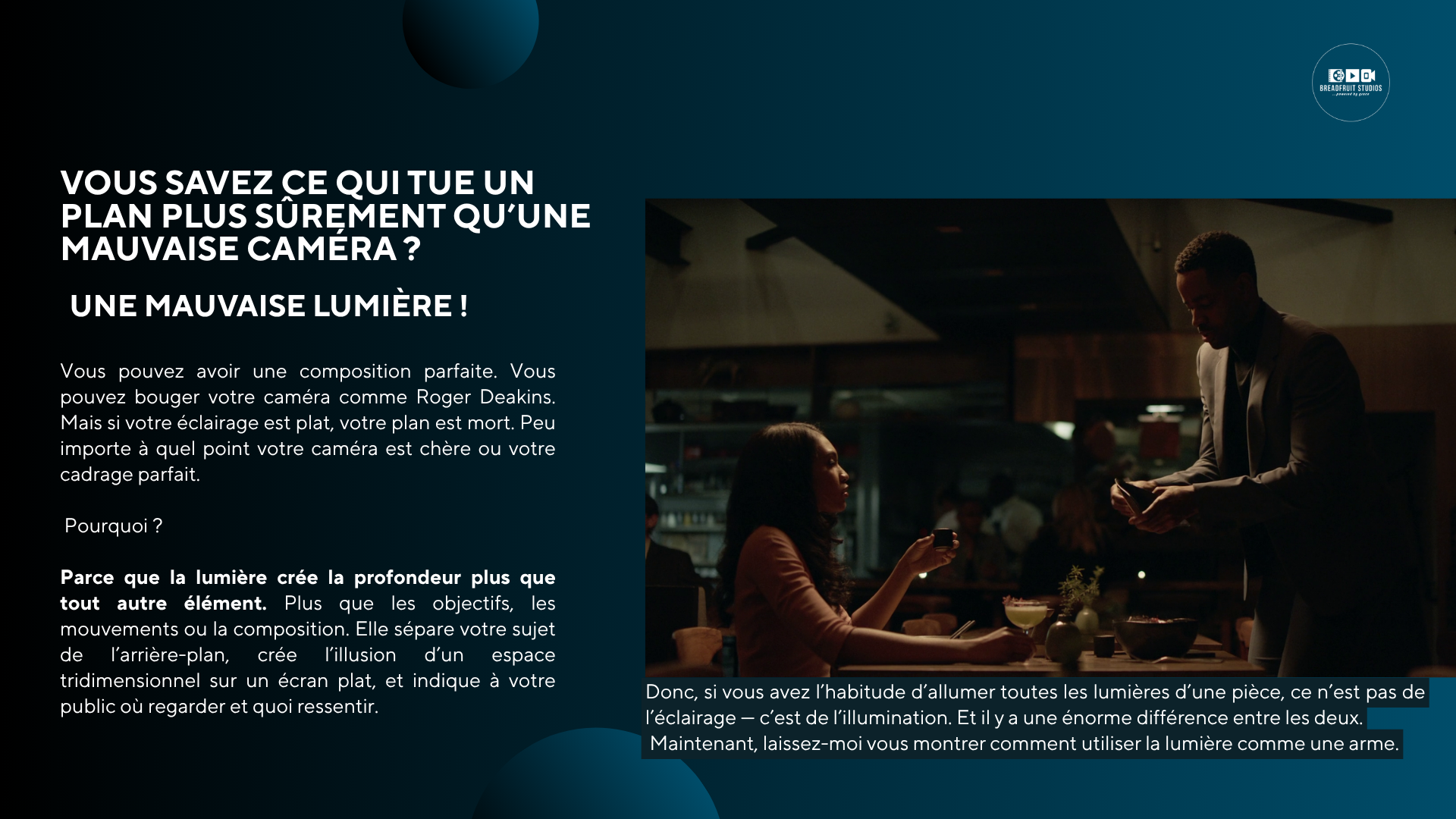 Una mala iluminación mata las historias. Una buena iluminación las cuenta. En este capítulo aprenderás a usar la luz natural, las lámparas, las sombras y los sistemas de contraluz para crear ambiente y dramatismo que hagan sentir cada fotograma.